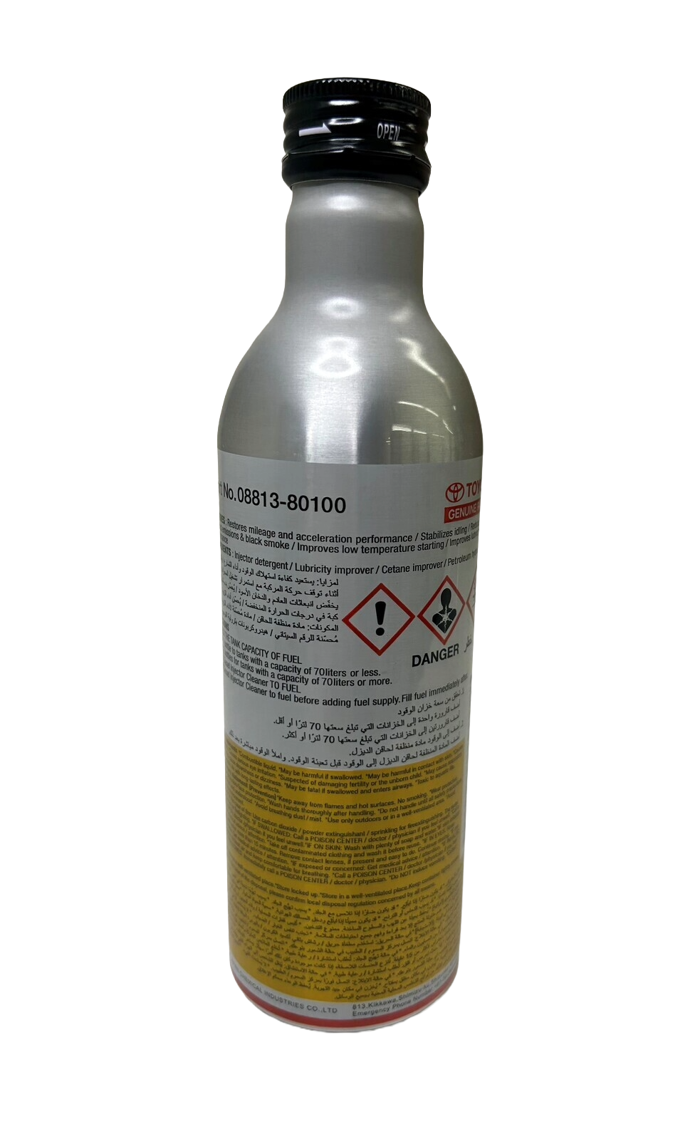 Genuine Toyota Diesel Injector Cleaner restores mileage and acceleration performance  / Stabilizes idling / Reduces exhaust emissions & black smoke / Improves low temperature starting / Improves lubricity performance.