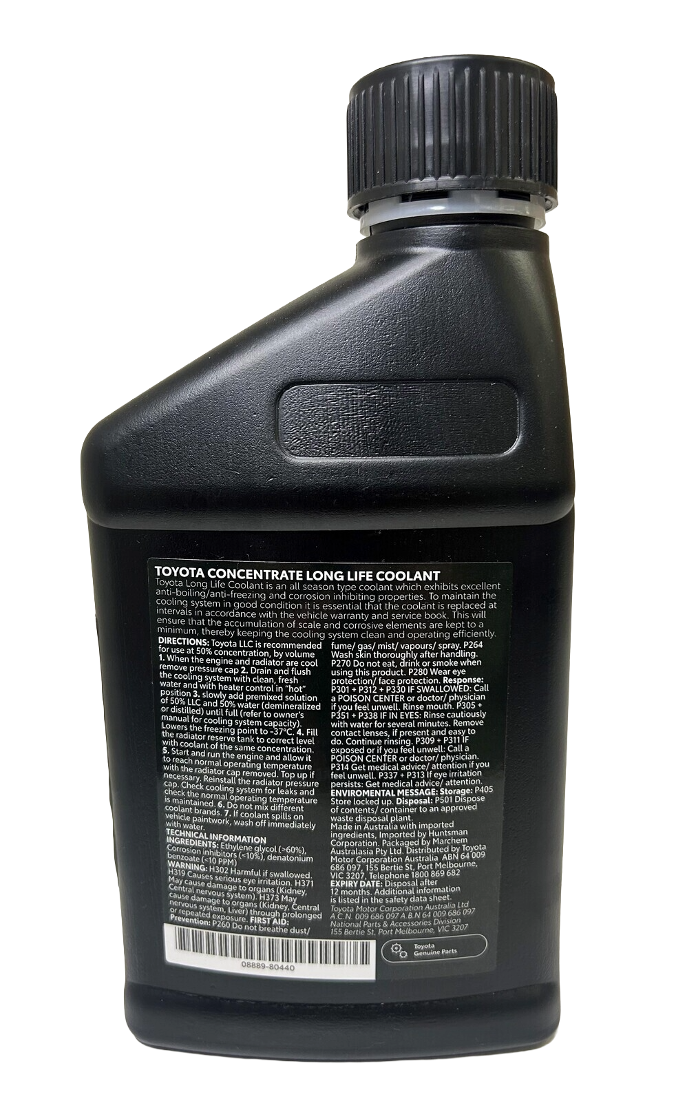 Toyota long life coolant is an all season type coolant which exhibits excellent anti-boiling/anti freezing and corrosion inhibiting properties. To maintain the cooling system in good condition it is essential that the coolant is replaced at intervals in accordance with the vehicle warranty and service book. This will ensure that the accumulation of scale and corrosive elements are kept to a minimum, thereby keeping the cooling system clean and operating efficently.