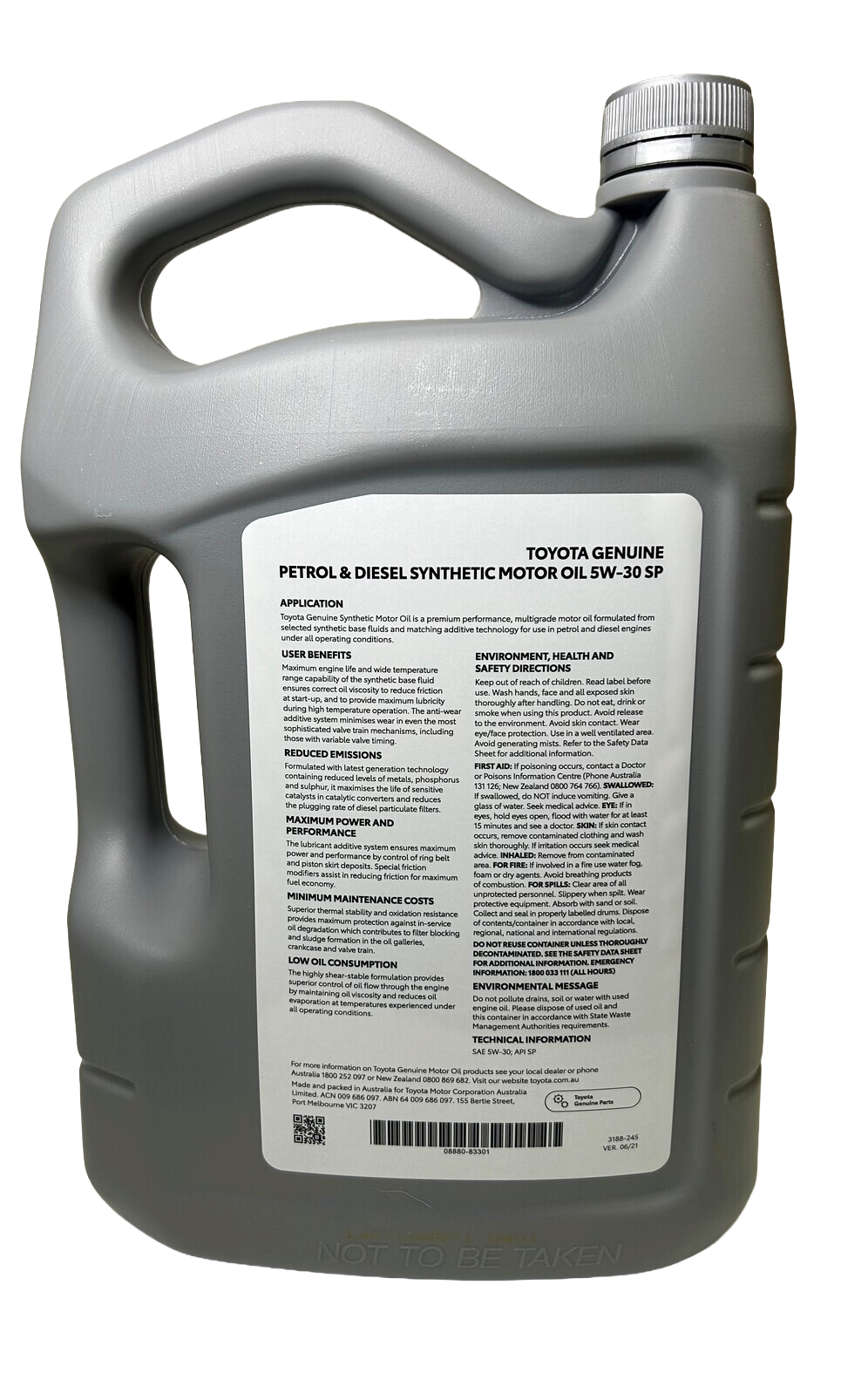 Genuine Toyota Synthetic Engine Oil is a premium performance, multigrade motor oil formulated from selected synthetic base fluids and matching additive technology for use in petrol and diesel engines under all operating conditions.