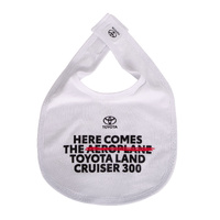 Start them young with the Toyota LC300 Baby Bib. This baby bib will ensure your baby stays clean and stylish during mealtime adventures whilst representing the Toyota brand.