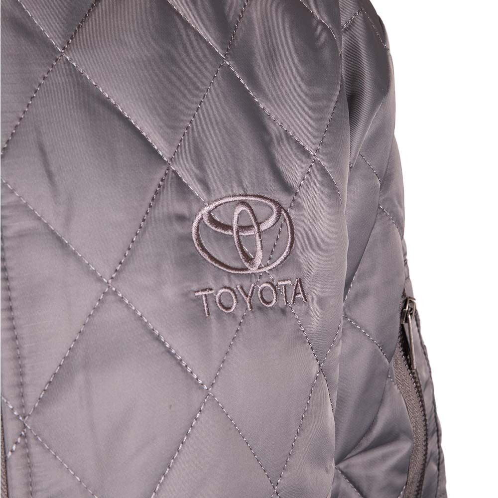 The Toyota logo is embroidered on the left chest. Perfect for everyday wear or a casual outing, this bomber jacket delivers on both form and function.